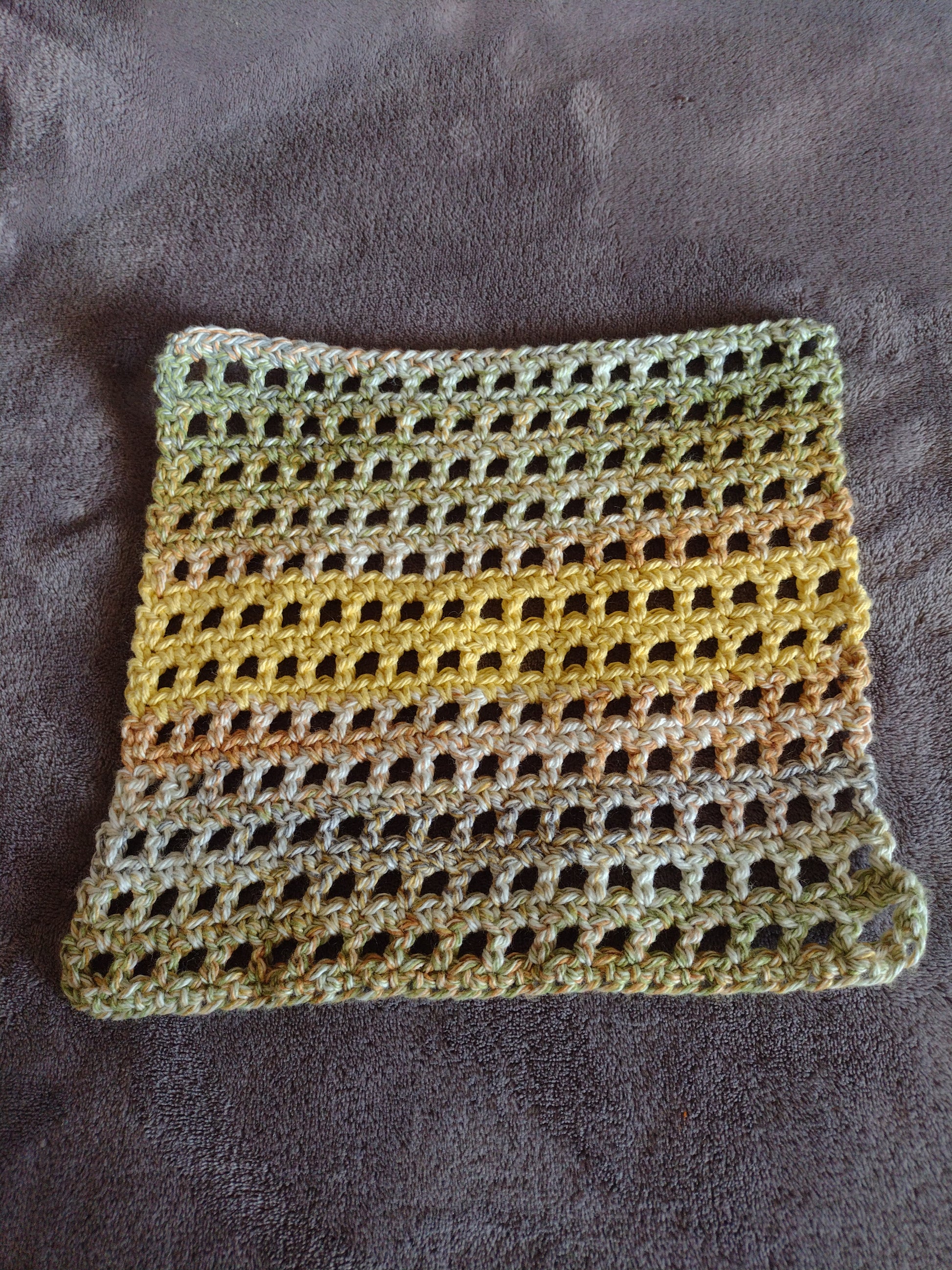 This crocheted dish cloth adds color and functionality to any kitchen. Made in a size of 9 inches by 9 inches, it is perfect for cleaning dishes and countertops. The browns and yellow color scheme adds a touch of warmth while keeping your kitchen clean.